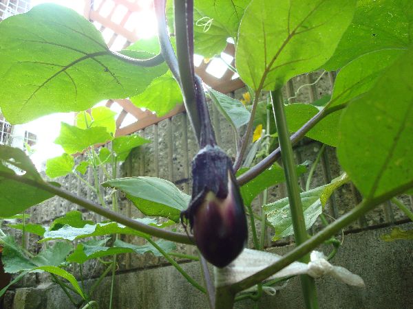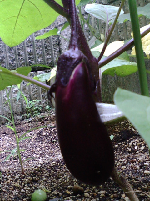 ナス 1個目収穫〜♪結構、大物です!