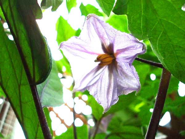 ナスビもひとつめの花をつけました!