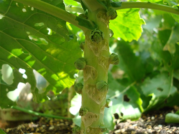 一度抜いた芽キャベツですが、鉢ごと埋められて育っていました(誰の仕業?)