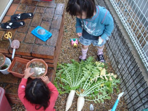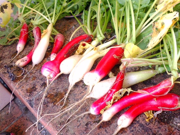 白と紅のミニ大根が収穫になりました♪詳しくは大根のpageで