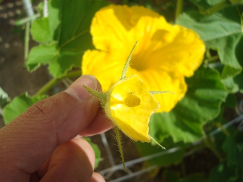 一つ目の雌花は失敗してしまったので、今度は受粉してみました。