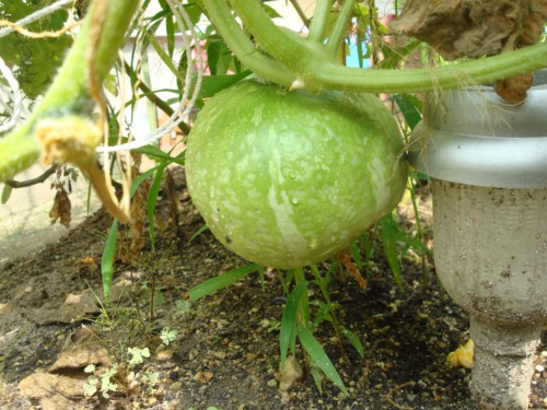かぼちゃ1個目収穫しました。なかなかの出来ですよ!