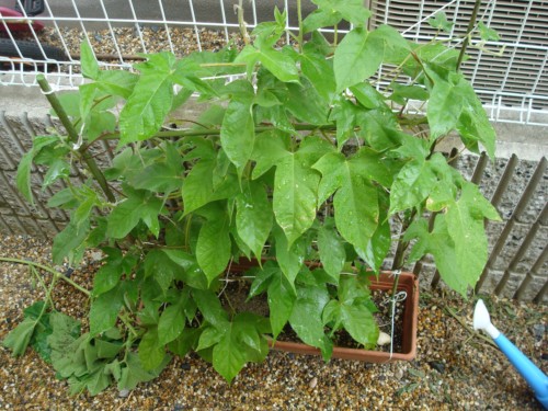 それにしてもこっちのアサガオはなかなか花が咲かず・・・葉っぱばっかりです!