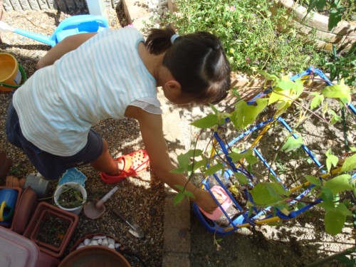 さっちゃんアサガオに水やりです!他のもやっといてね!