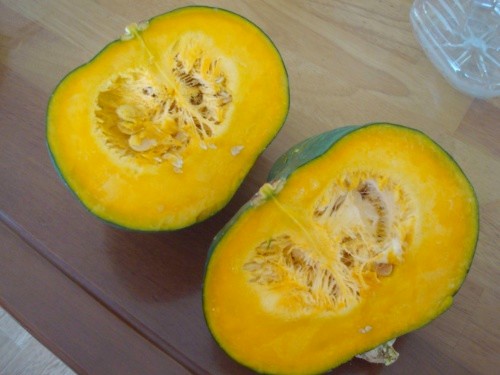 この間採れたかぼちゃを割ってみると、実がぎっしり!