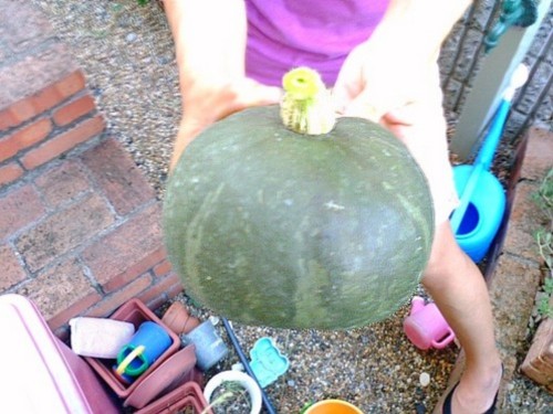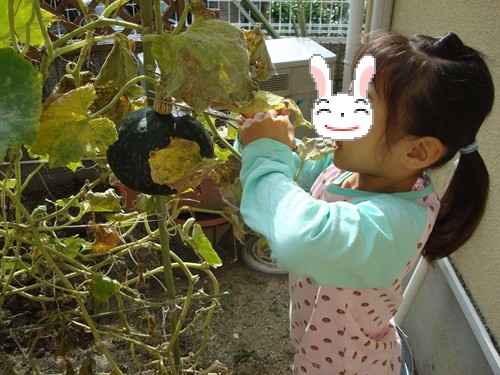 今度のカボチャはあっという間にこぶしサイズより大きくなっていました!