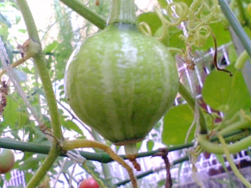 もう一つ、カボチャができたぞー! でも茎が太すぎて、なかなか切れません・・・最後はパパと一緒に採りました!