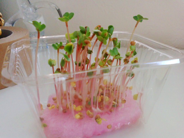 お手軽!かいわれ大根です♪赤茎なので、フラミンゴになるはずです♪