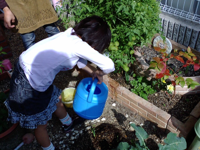 今年は、パパの好きなシシトウを育てています♪意外にもピ−マン嫌いなさっちゃんも青トウガラシなら食べられるようで、初収穫のシシトウはさっちゃんに食べられてしまいました(+_+)