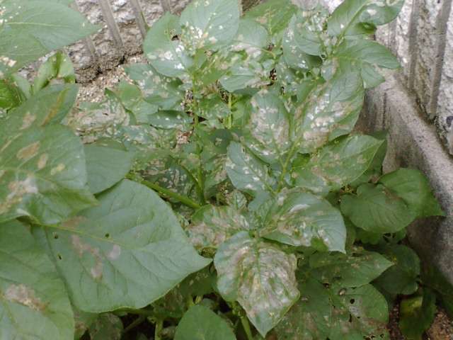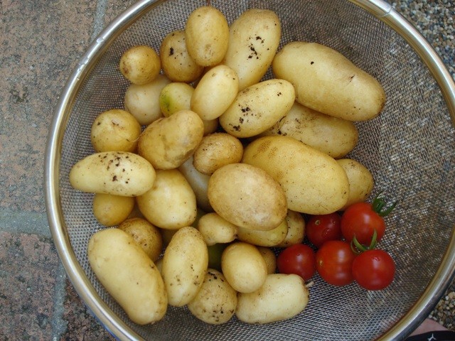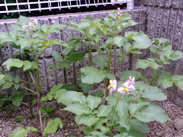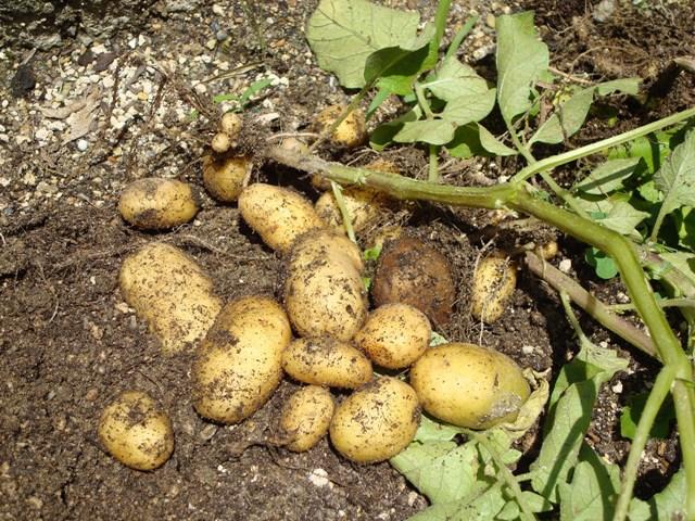 畑の奥の方から試しにぬいてみると、小さなジャガイモができてました。