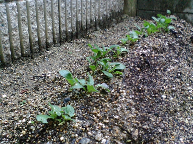 半日、陰干しした後、植えていきます。育ちの悪いのは、間引きします(去年の反省)