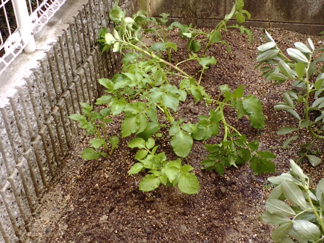 ジャガイモの葉も出てきました(本当はもっと植えているのでまだ出てくると思います)