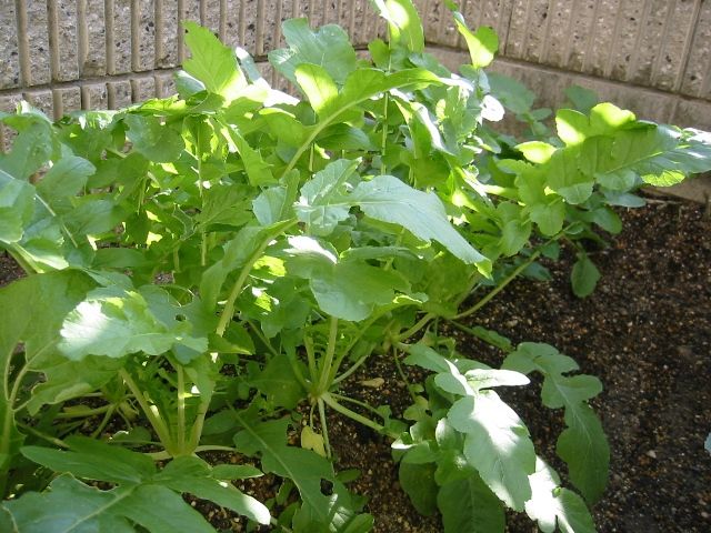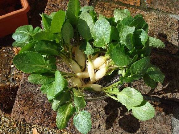 葉っぱより小さなマメ大根ができました。これはあまりにも小さいので、葉っぱごと煮込んで頂きました!goodな味でした!!