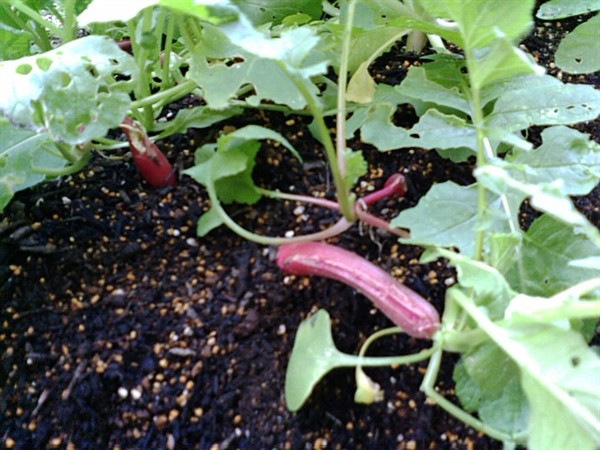 ミニ大根も赤くて大きくなっています。そろそろ収穫時期かな!?