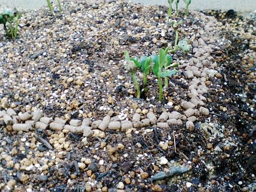 枝豆もナメクジの被害にあったので、ナメクジ除けで周りを囲み、更に駆除剤を畑の周囲にばら撒きました。