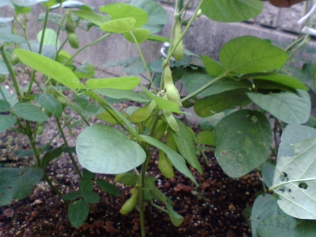 枝豆もナメクジの難を逃れて、元気に育ってきました!(1箇所2つまで、間引きしました。)